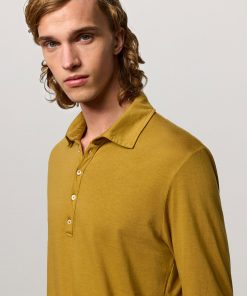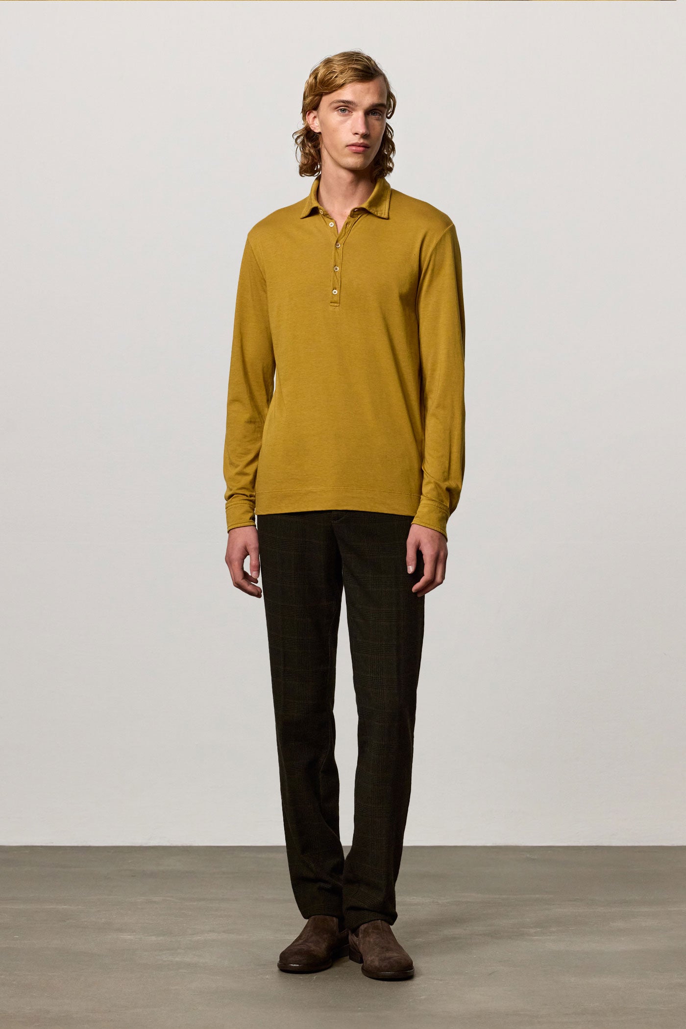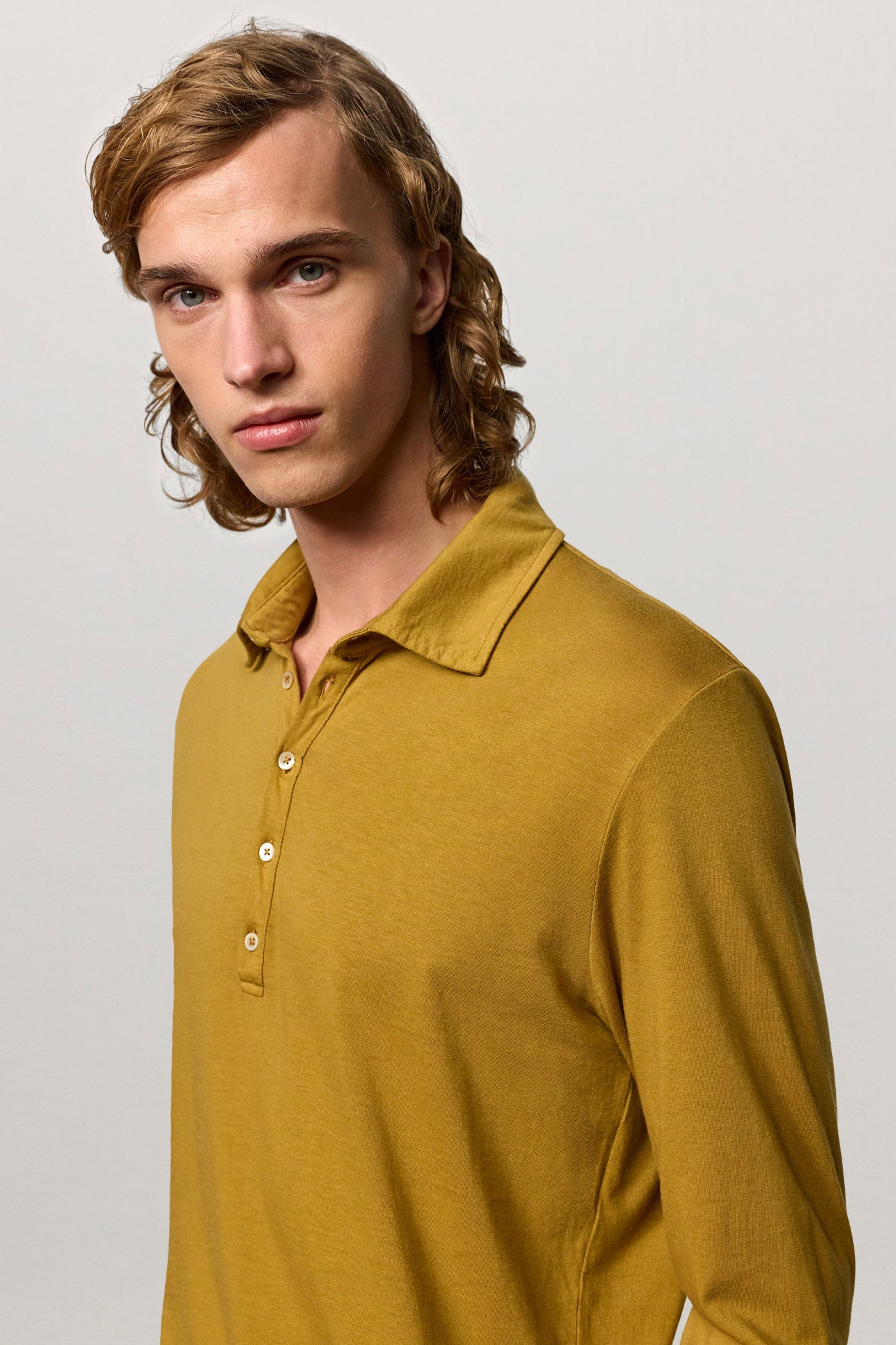 Regular-fit 5-button long-sleeve polo shirt in lightweight cotton cashmere jersey with a chest pocket and shirt cuffs. Made in Italy.