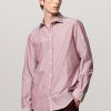 Regular-fit shirt with a pointed collar, classic soft front placket, and a cotton voilè inner bib. Made of striped watercolor cotton. Features custom badge embroidery for initials and a pointed rear yoke. Made in Italy.