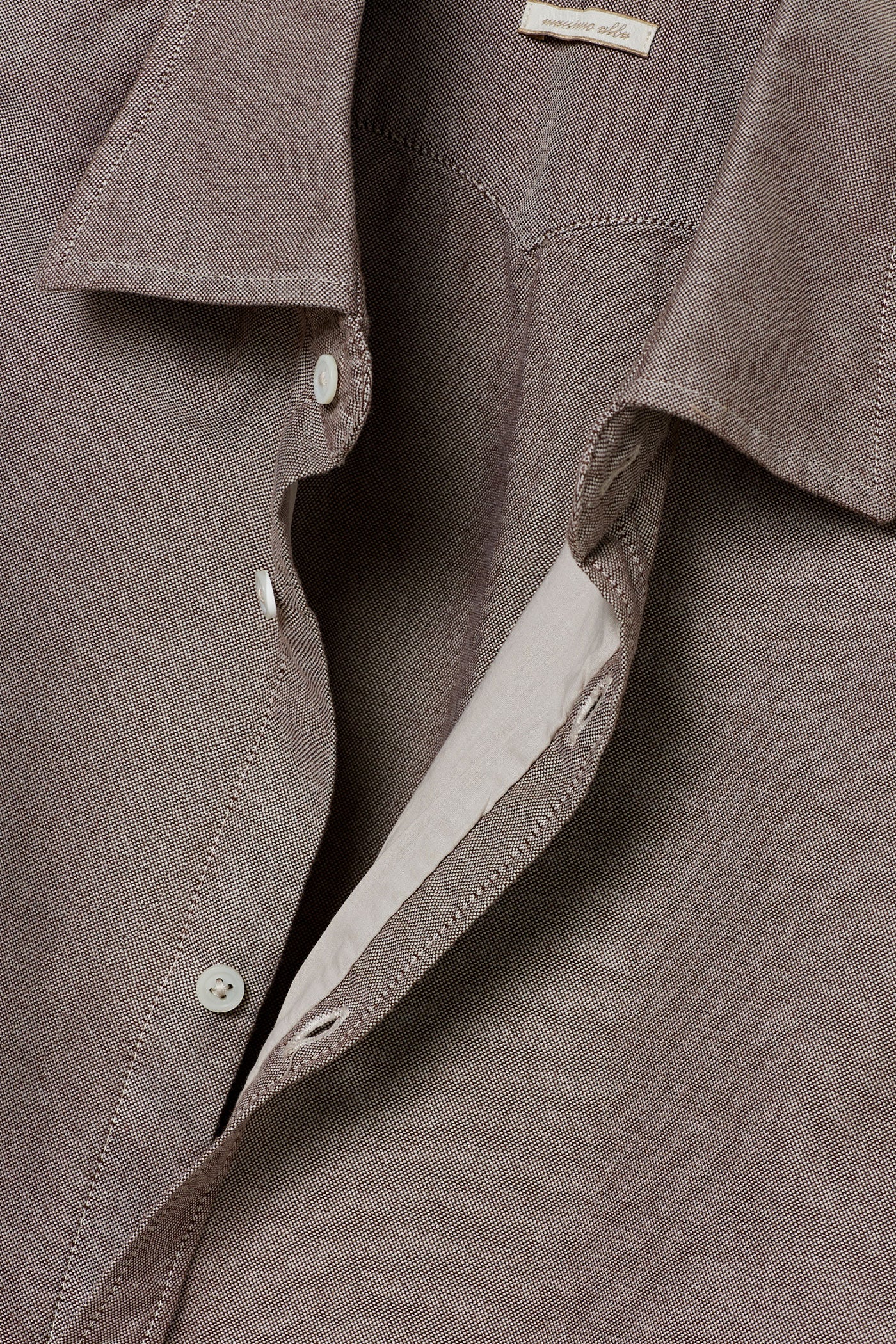 Regular-fit shirt with a pointed collar, classic soft front placket, and a cotton voilè inner bib. Made of watercolor oxford cotton. Features custom badge embroidery for initials and a pointed rear yoke. Made in Italy.