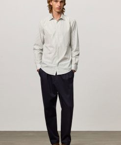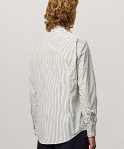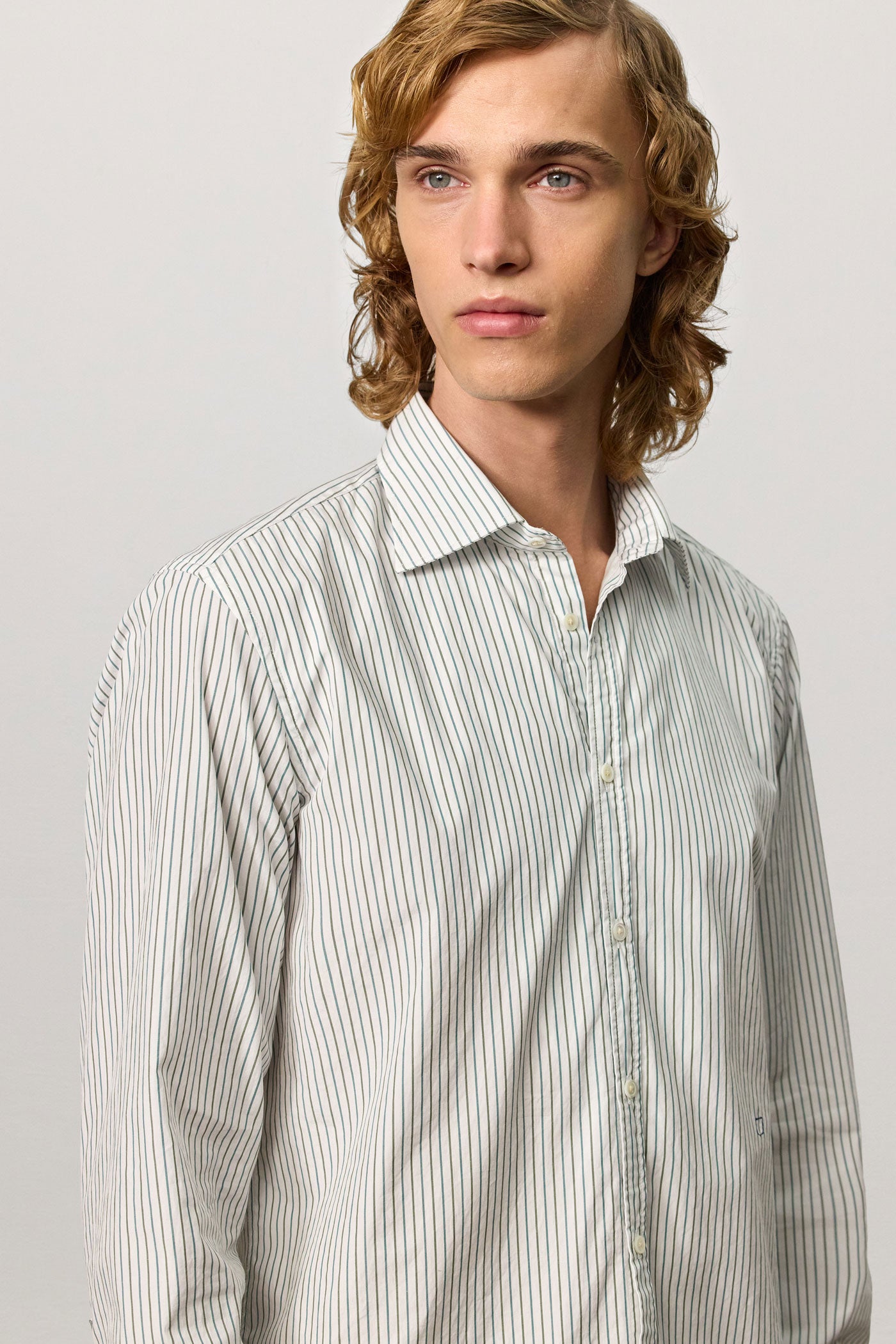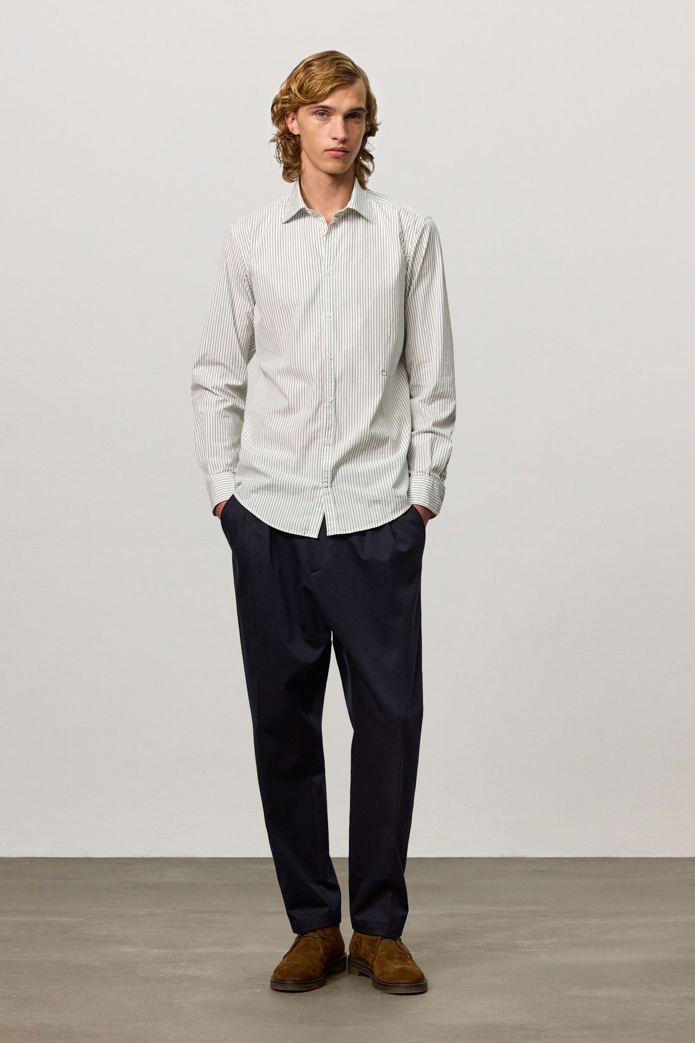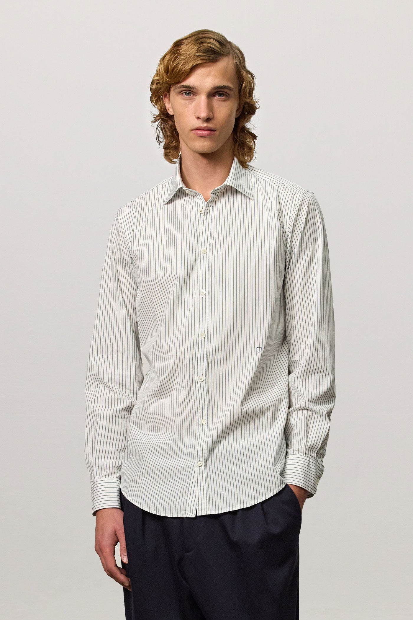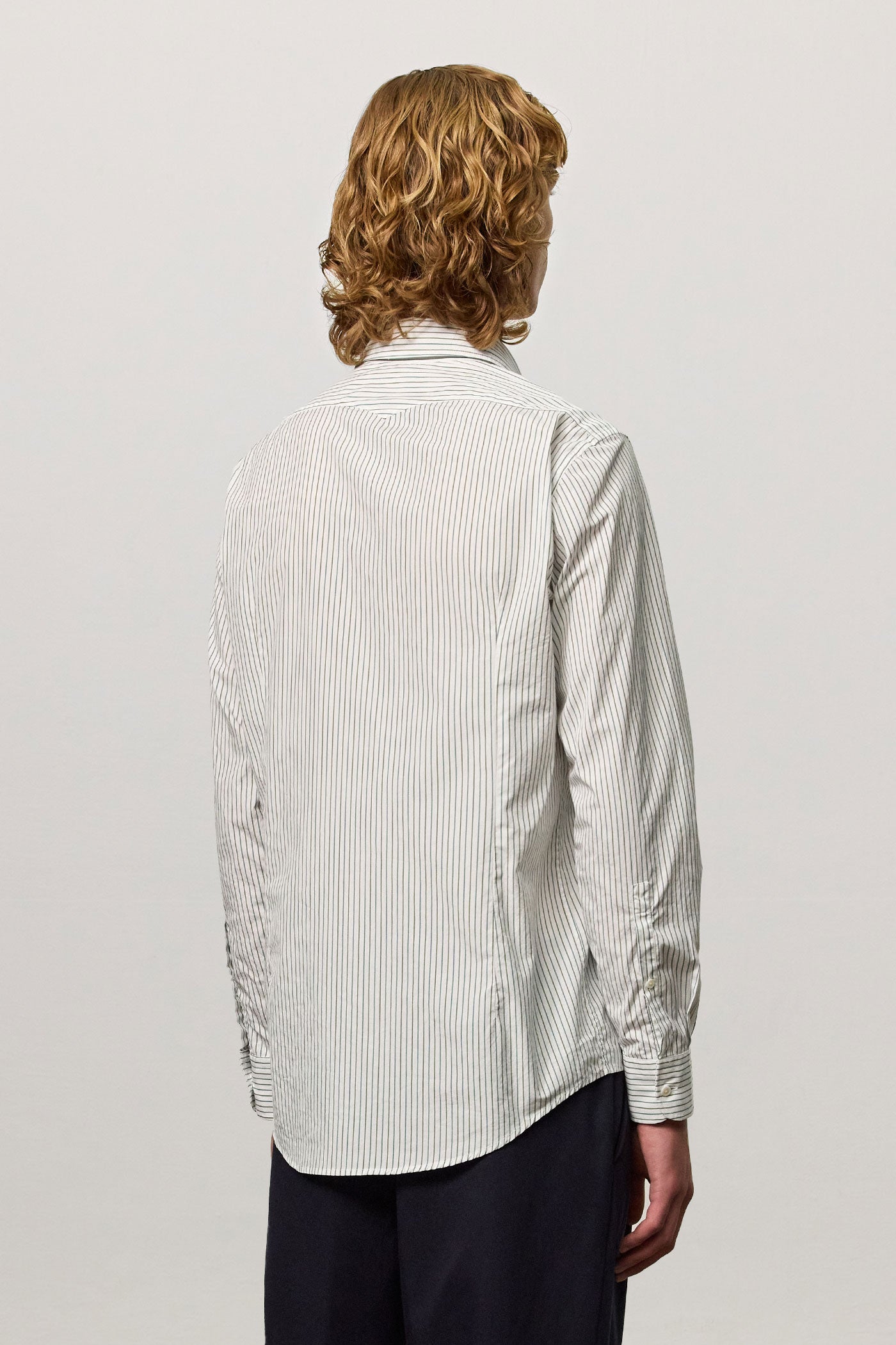 Regular-fit shirt with a pointed collar, classic soft front placket, and a cotton voilè inner bib. Made of cotton. Features custom badge embroidery for initials and a pointed rear yoke. Made in Italy.