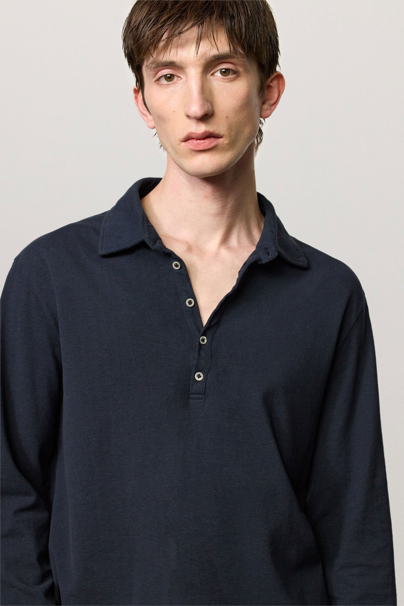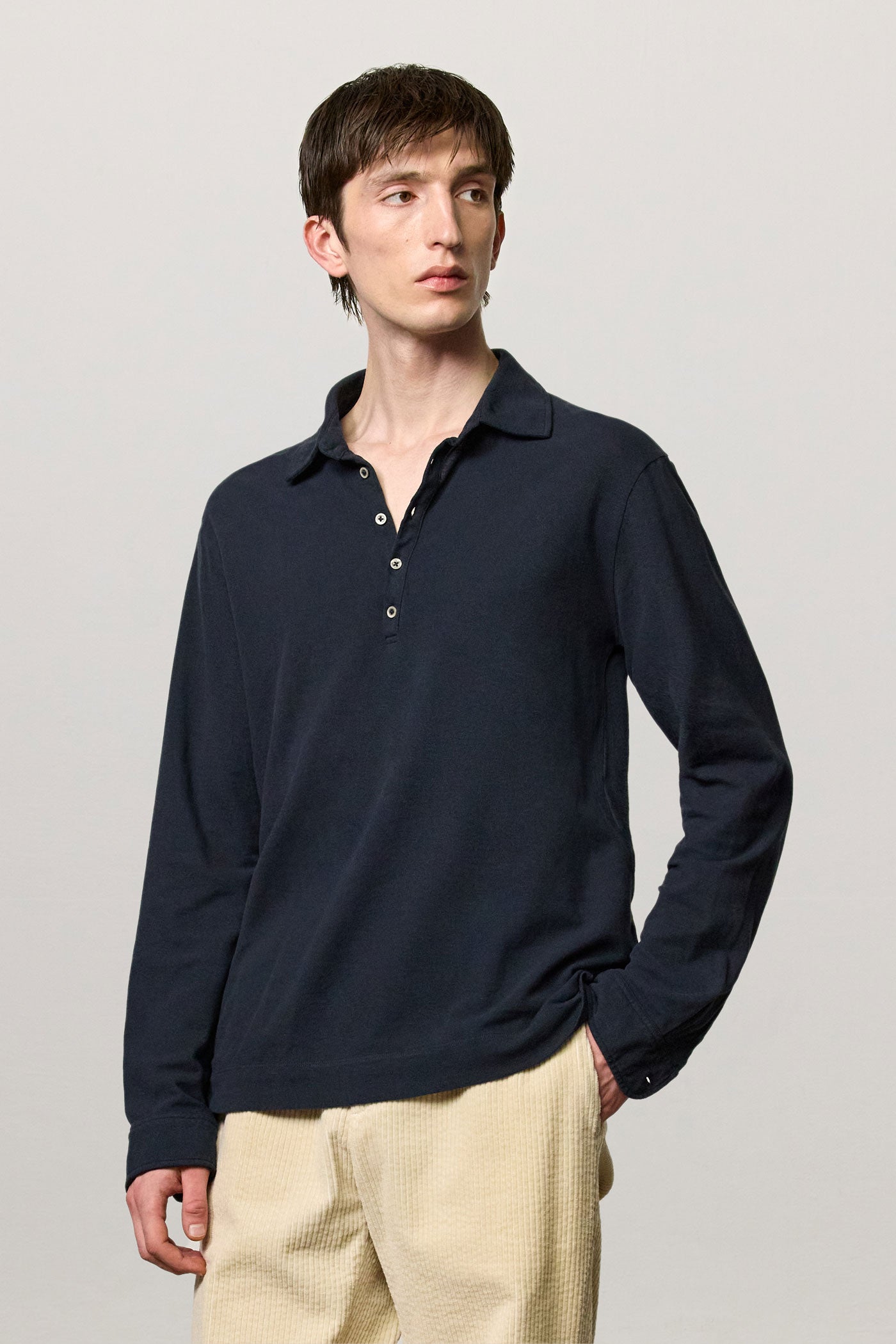 Long-sleeved polo shirt with a regular fit and five-button closure, crafted from cotton-cashmere jersey. Finished with a chest pocket and shirt-style cuffs. Made in Italy.