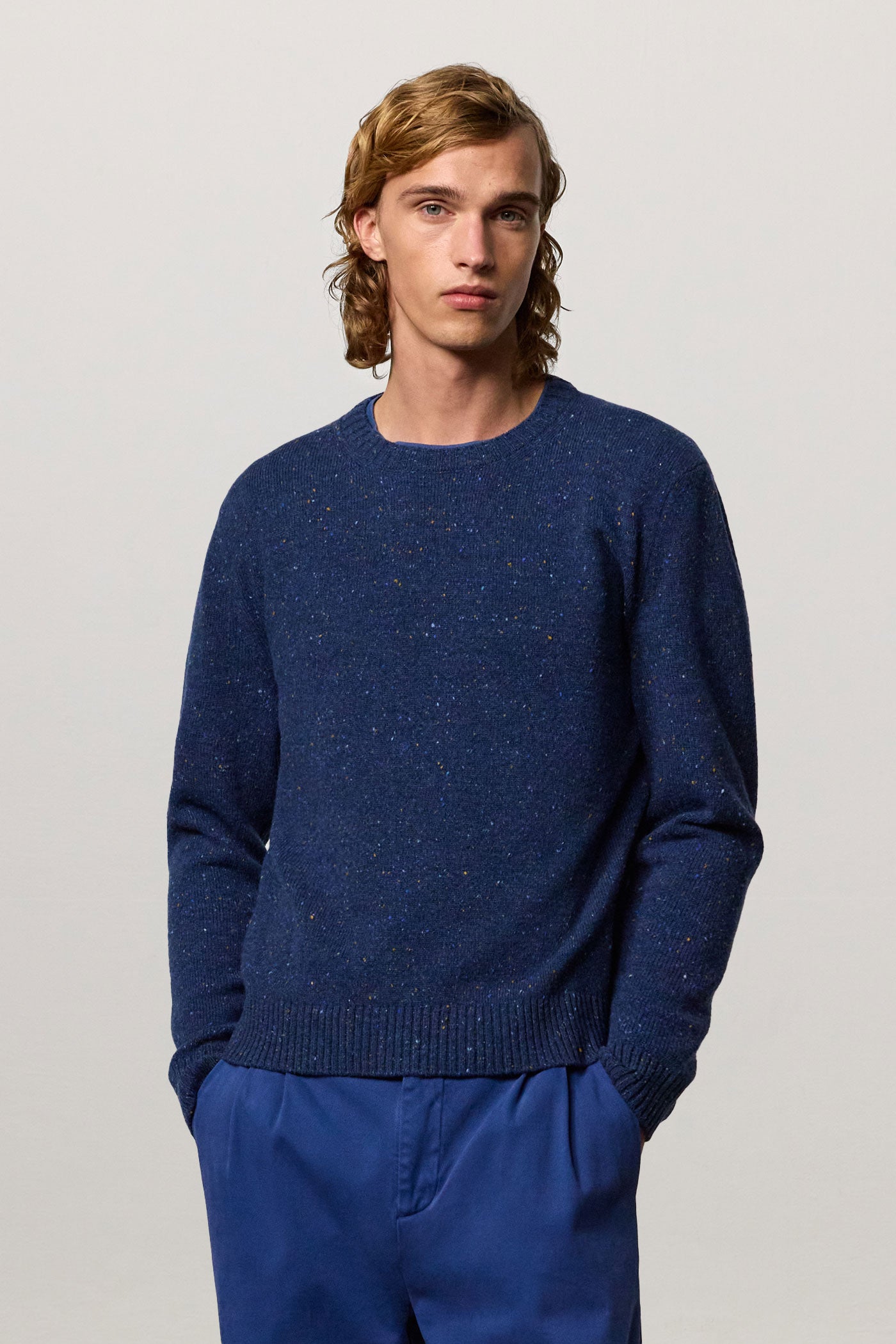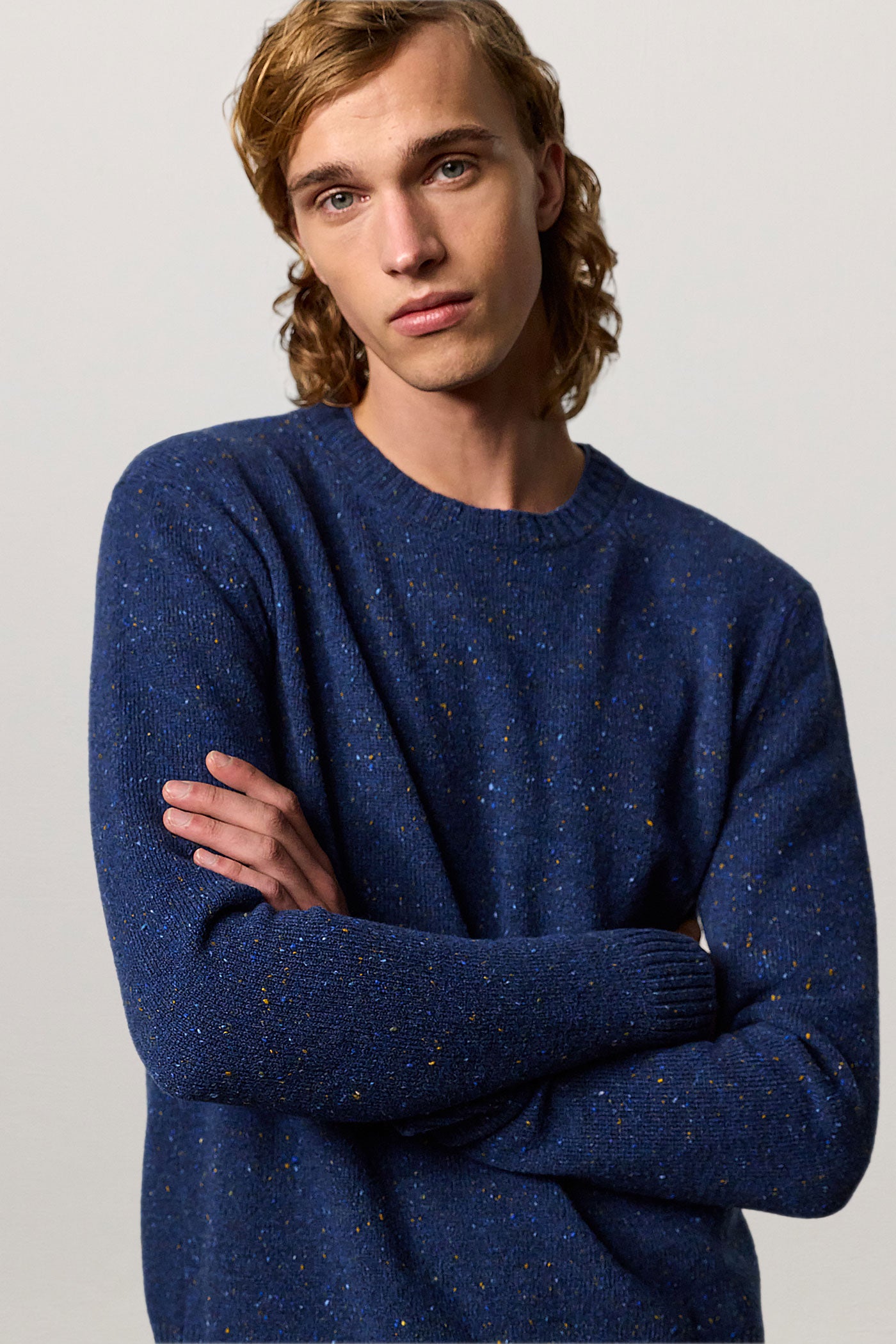 Regular fit crewneck-sweater, ribbed edges. Made in soft virgin Shetland wool. Made in Italy.