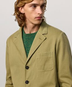 Informal jacket with four buttons, three patch pockets, and side vents, made of stretch cotton jacquard. Made in Italy.