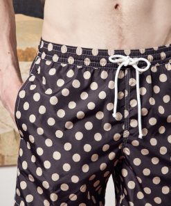 Classic fit swim shorts with drawstrings waistband, pockets and mesh slip lining.Made in an exclusive pois print. Made in Italy.