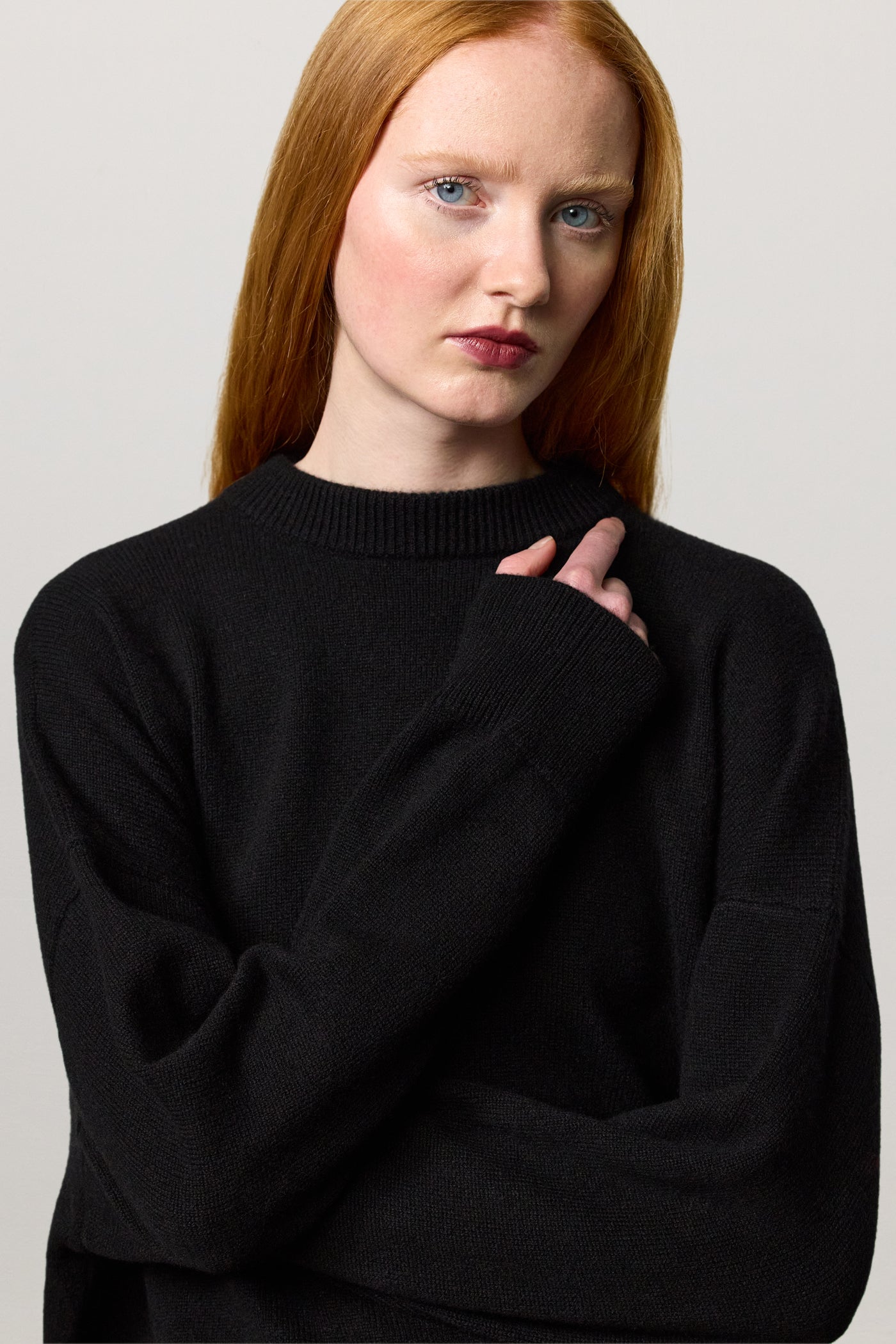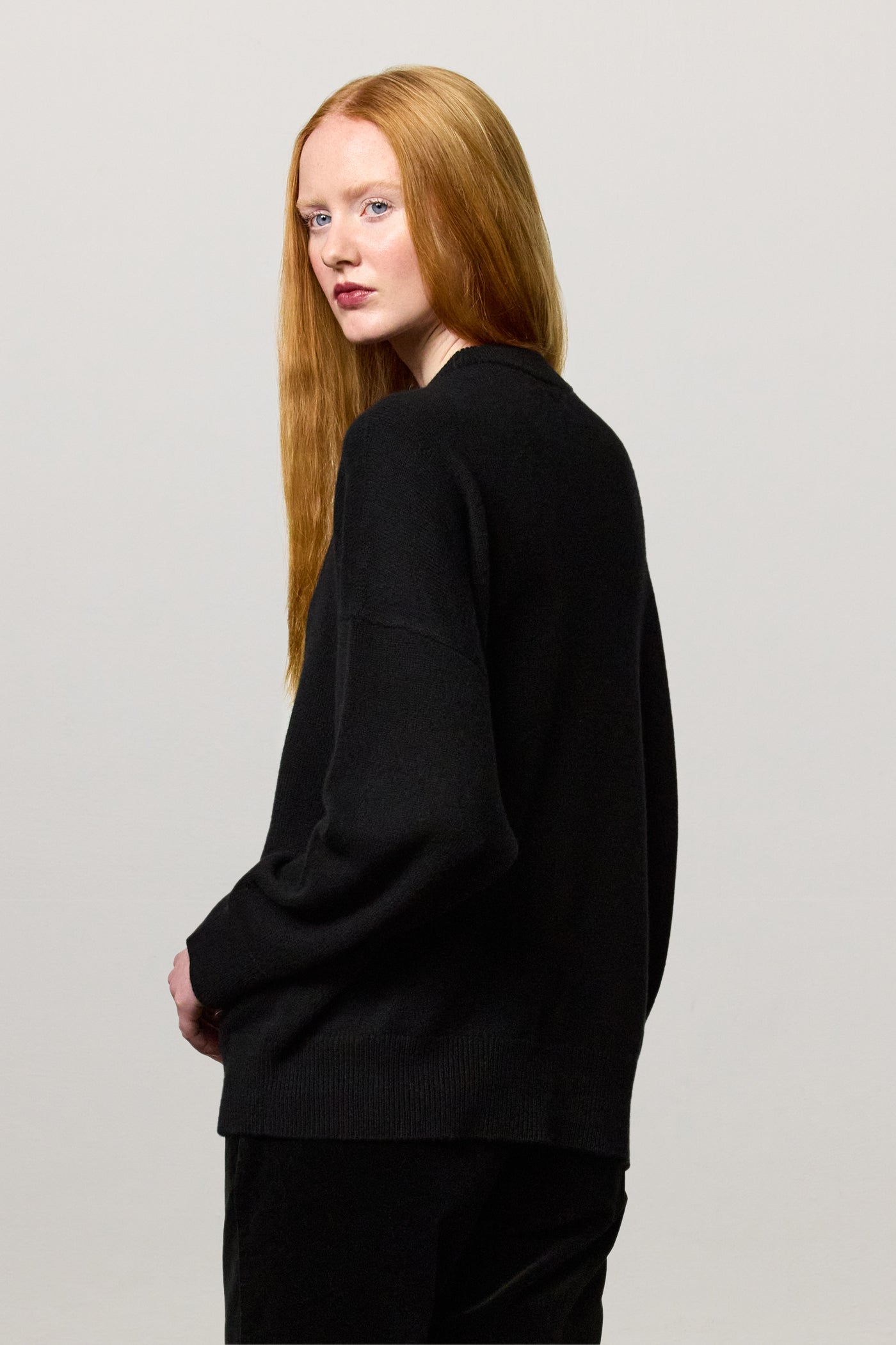 Crew-neck sweater in plain knit with an oversized fit, dropped shoulders and flat ribbed trims. Crafted from two-ply combed cashmere. Made in Italy.