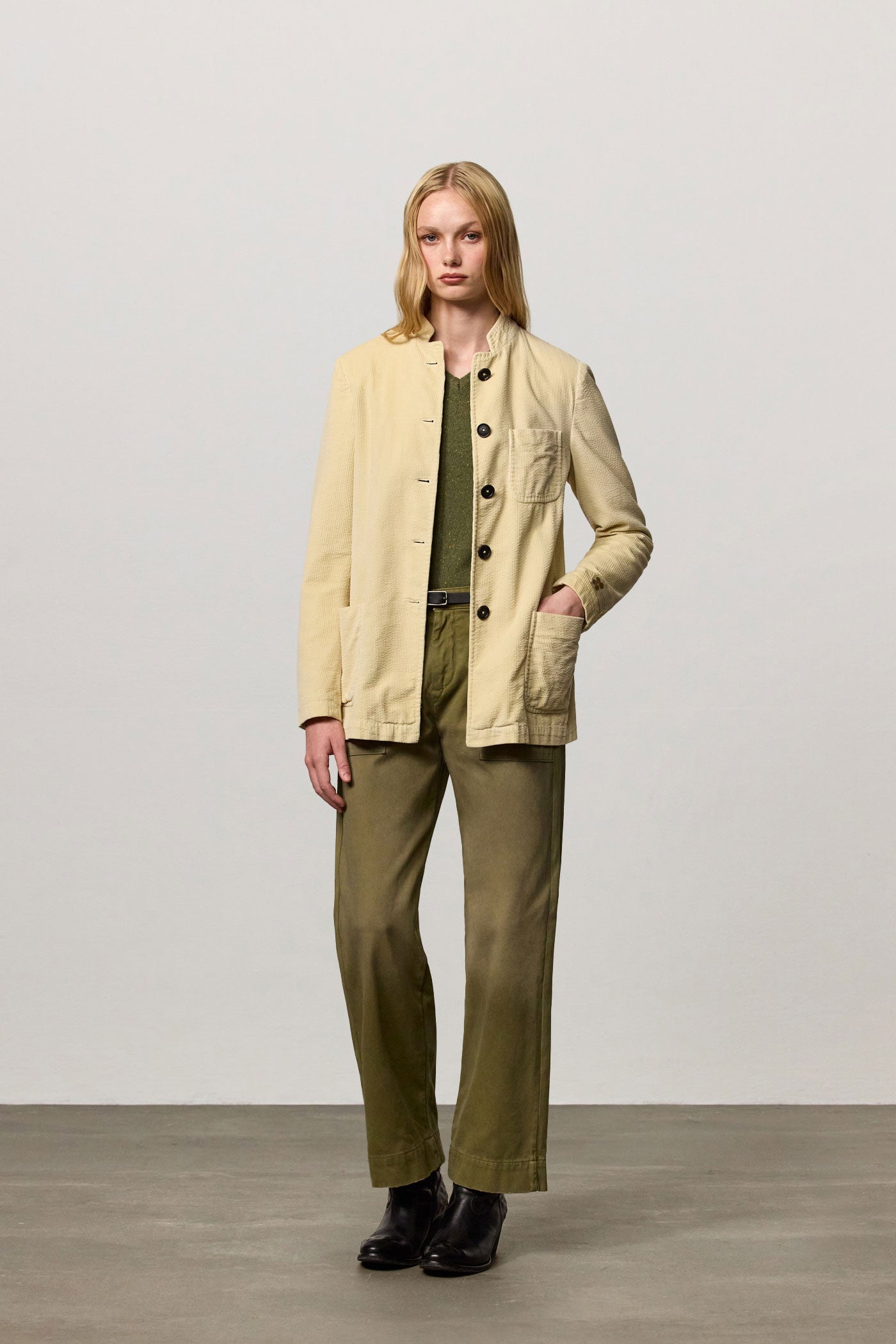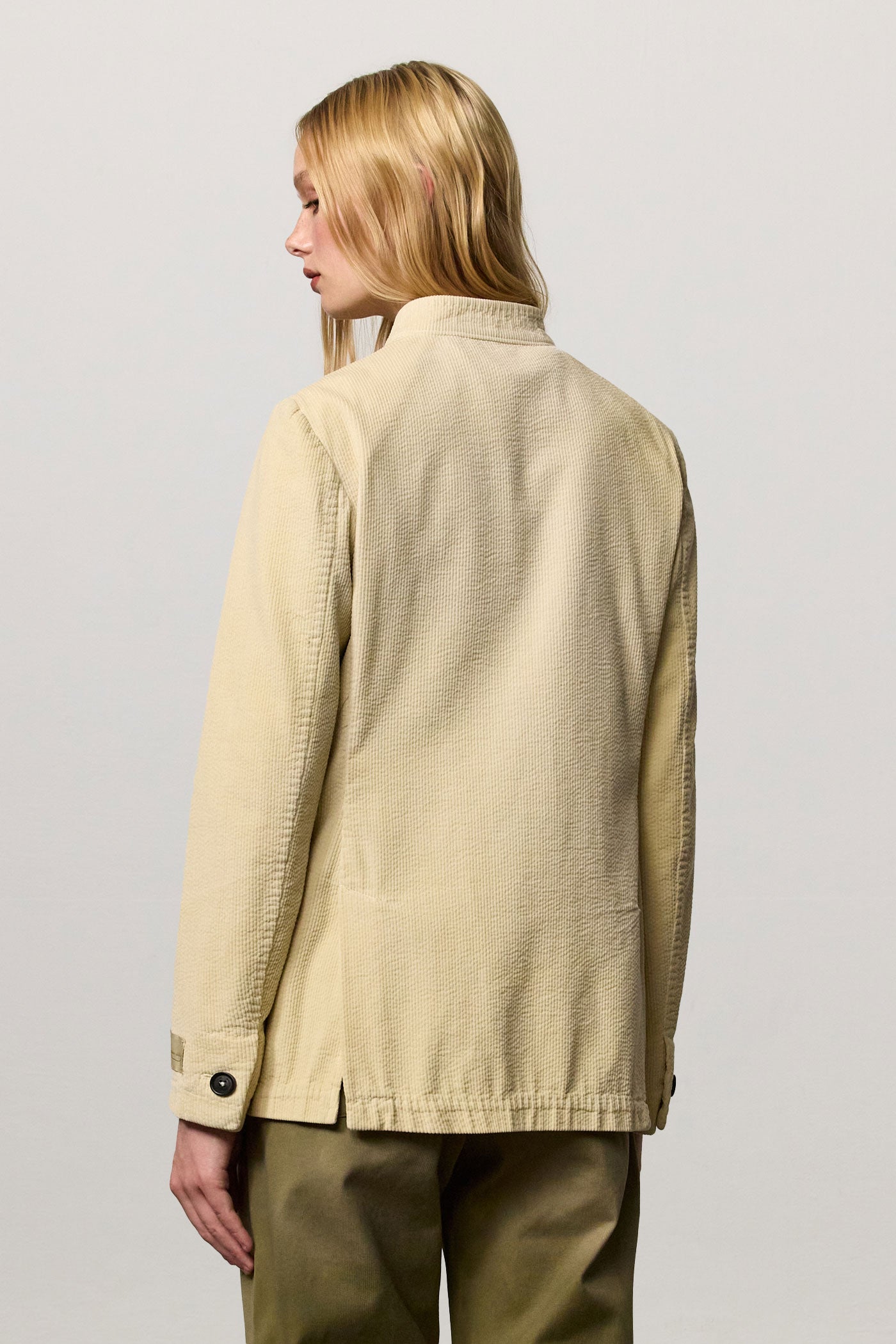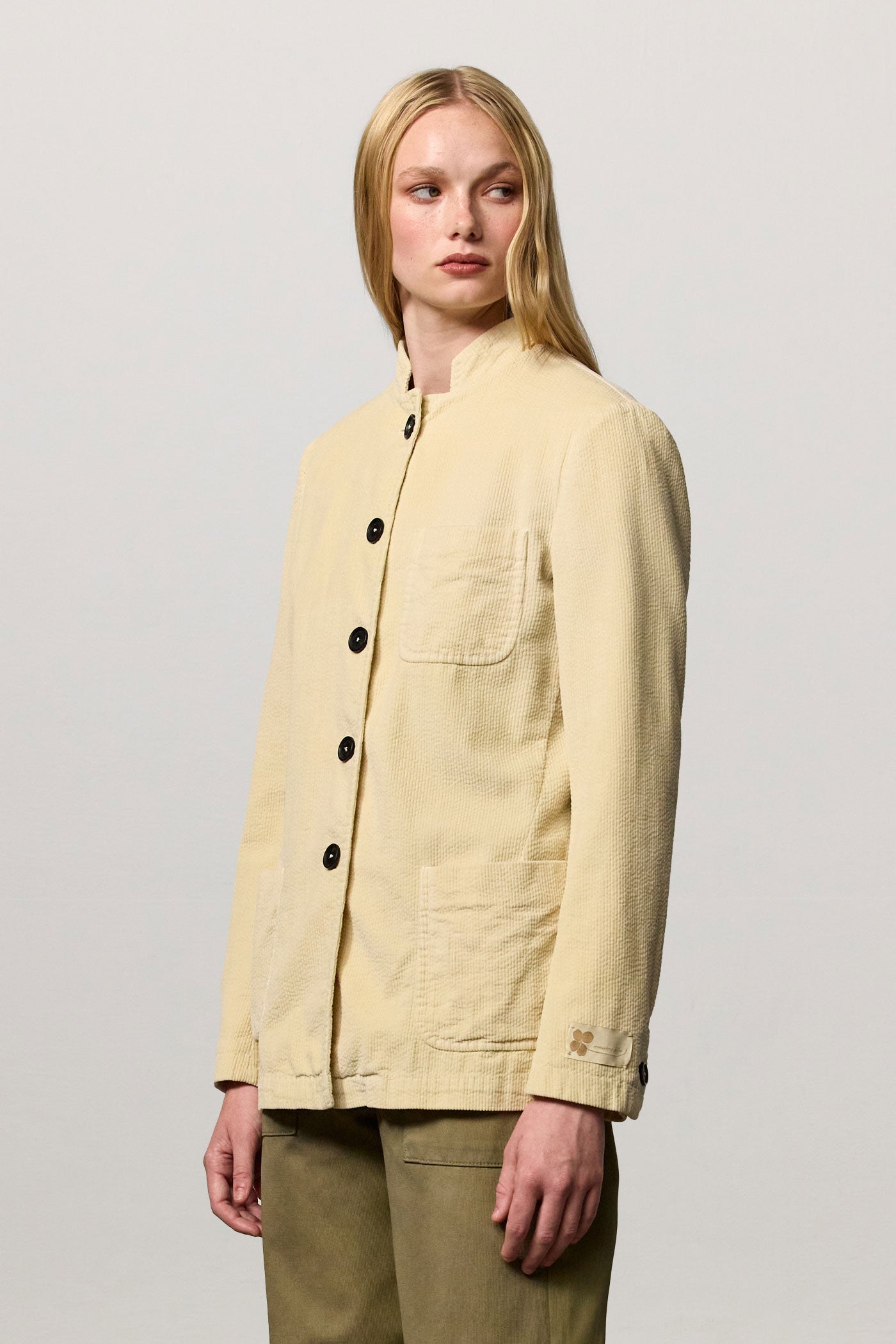 Regular-fit single-breasted jacket with a stand-up collar, patch pockets, side slits, and five horn buttons. Crafted from a refined cotton corduroy. Made in Italy.