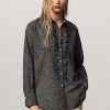 Comfort shirt with front ruffle and pointed rear yoke. Made of cotton. Made in Italy.
