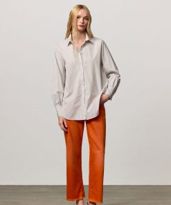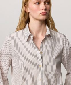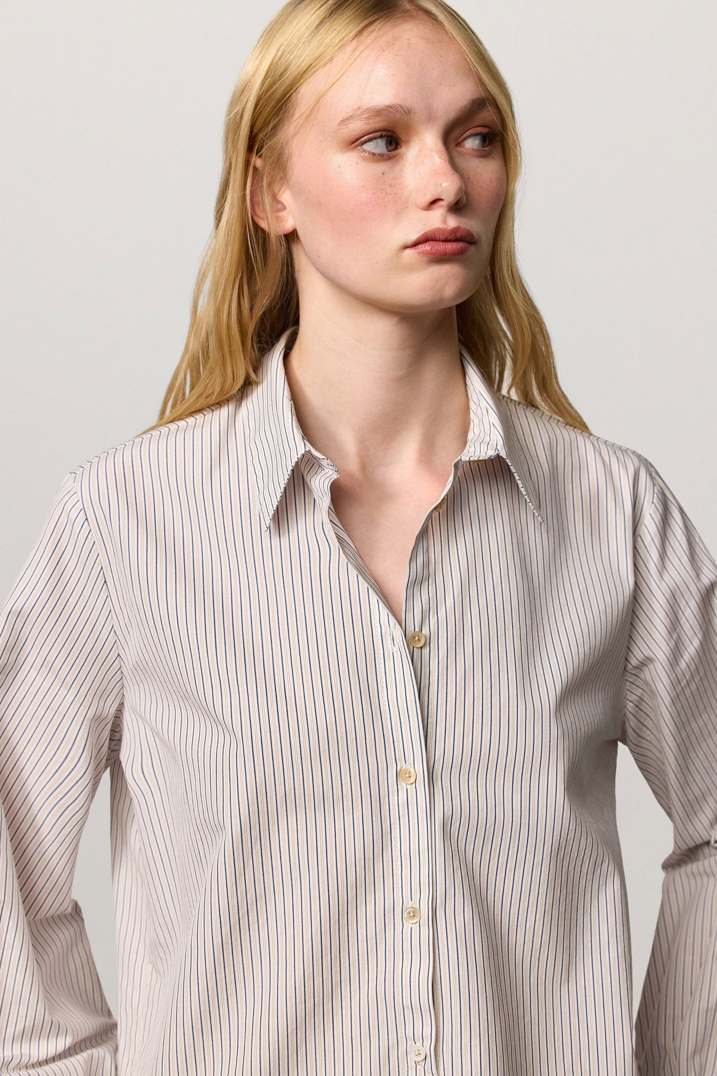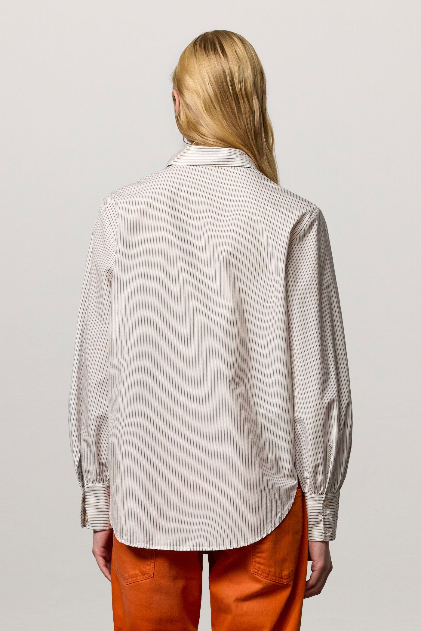 Men’s striped cotton shirt featuring a pointed collar and puffed cuffs fastened with three buttons. Made in Italy.