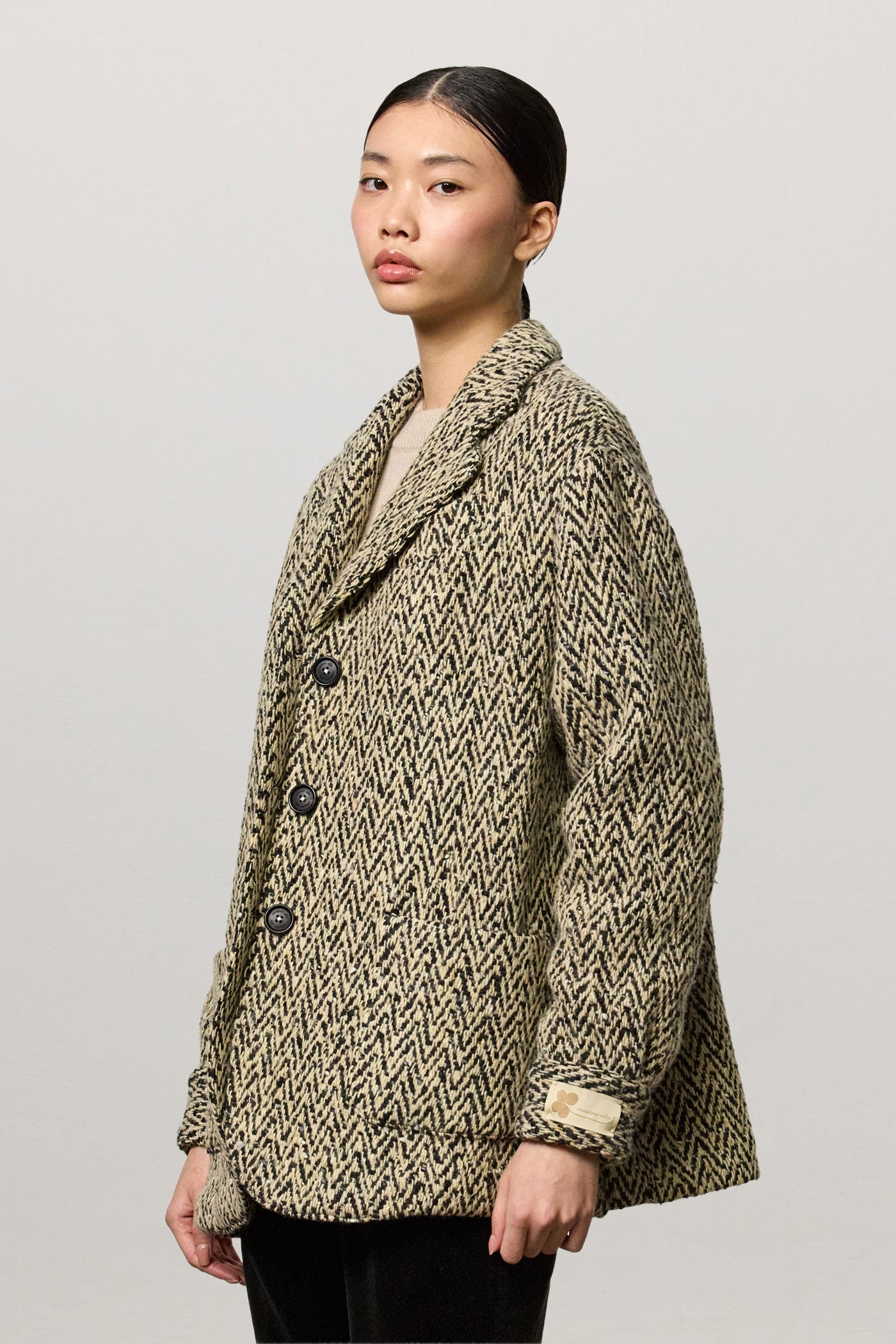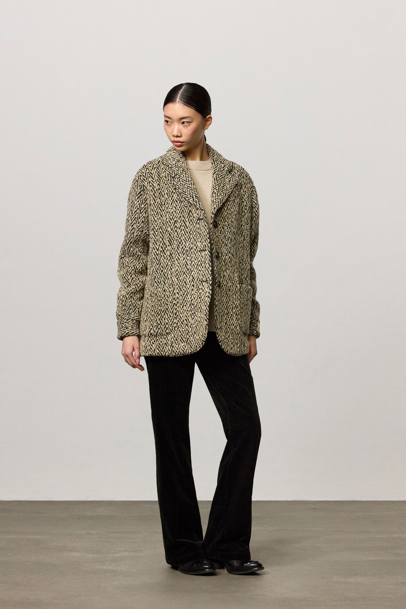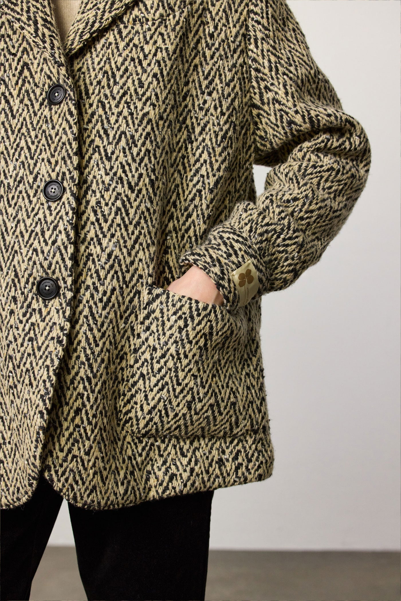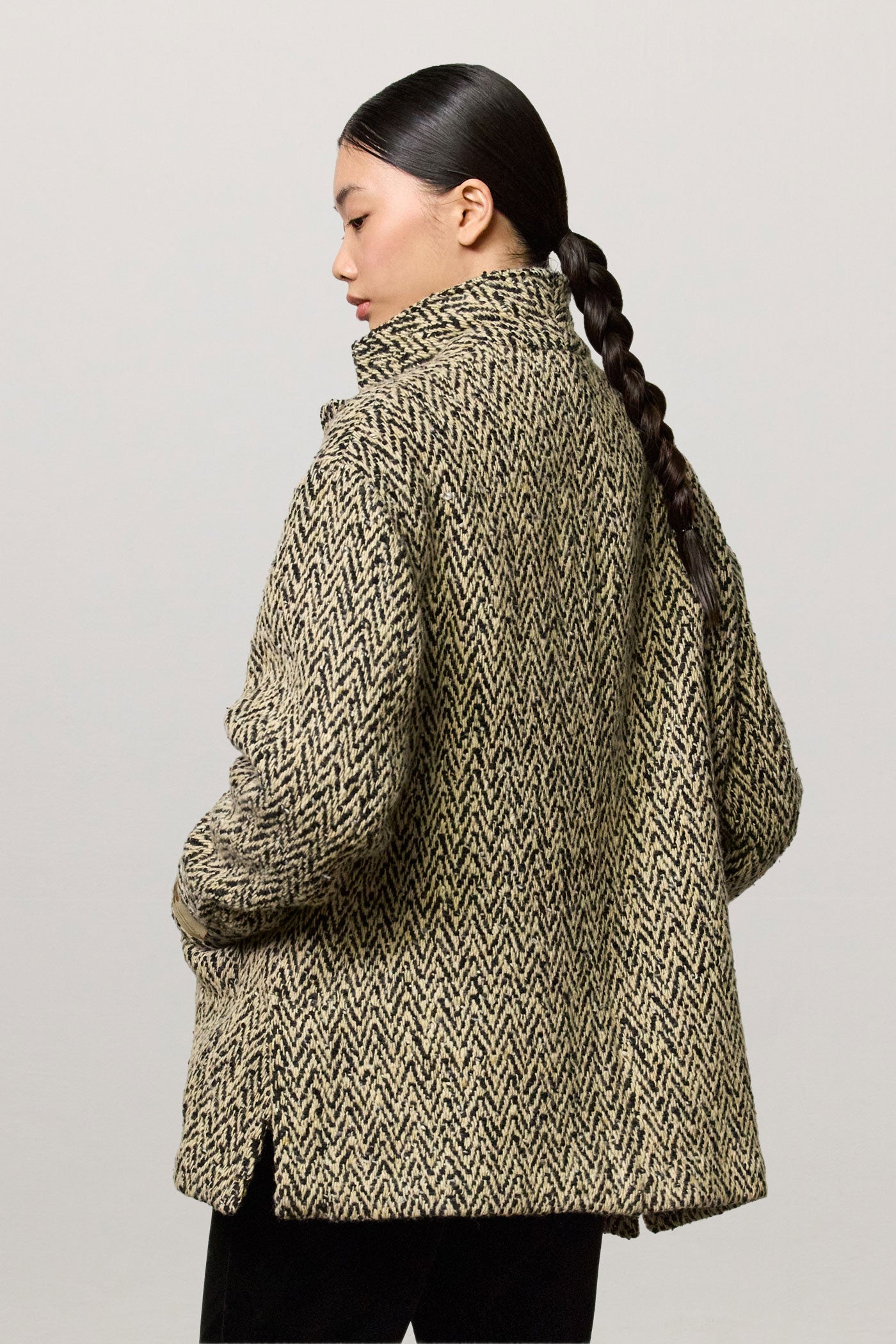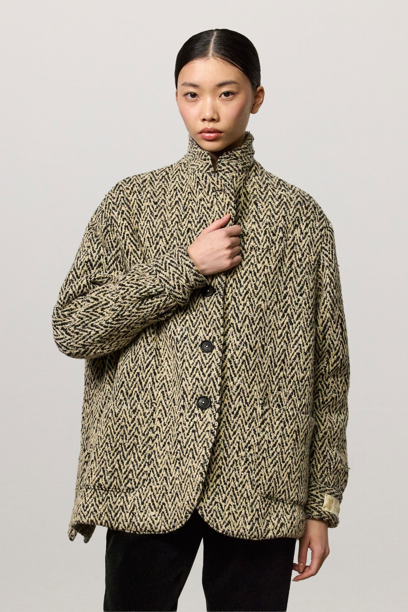 Oversized single-breasted caban with dropped shoulders, shirt-style cuffed sleeves, patch pockets and high chest pocket. Finished with horn buttons. Crafted from virgin wool. Made in Italy.