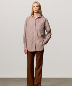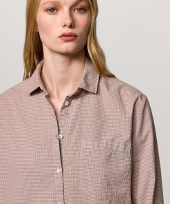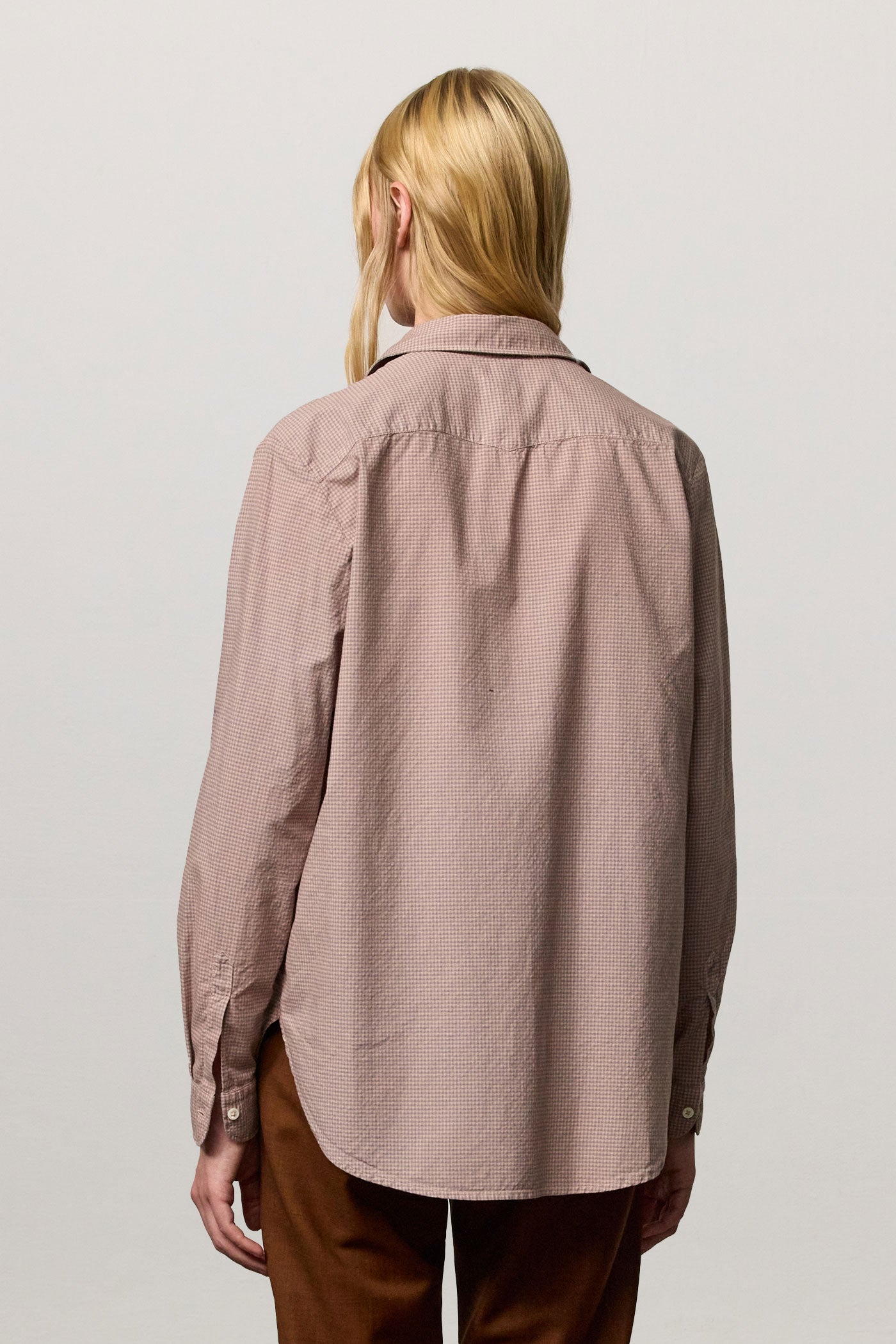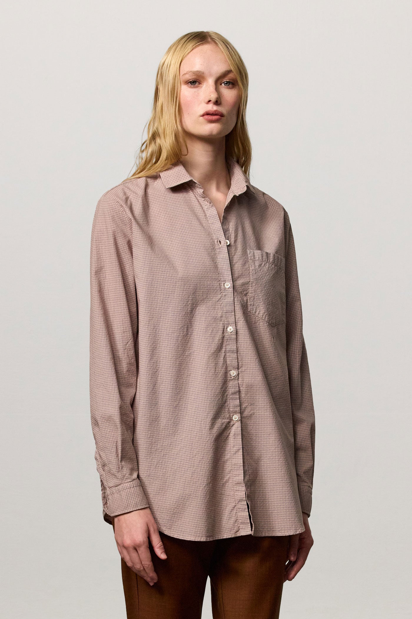 Classic collar shirt with chest pocket, pointed collar stand, small embroidered shield on the front for adding numbers, made in micro check watercolor cotton. Made in Italy.