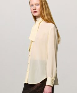 Blouse with bow tie, shirt-style cuffs and mother-of-pearl buttons. Crafted from silk voile. Made in Italy.