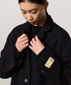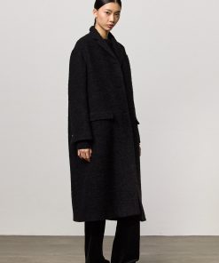 Single-breasted overcoat with dropped shoulders, welt pockets with flaps and four genuine horn buttons. Crafted from virgin wool and nylon bouclé. Made in Italy.