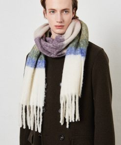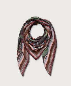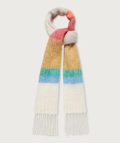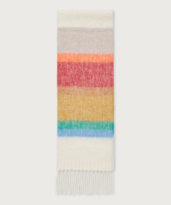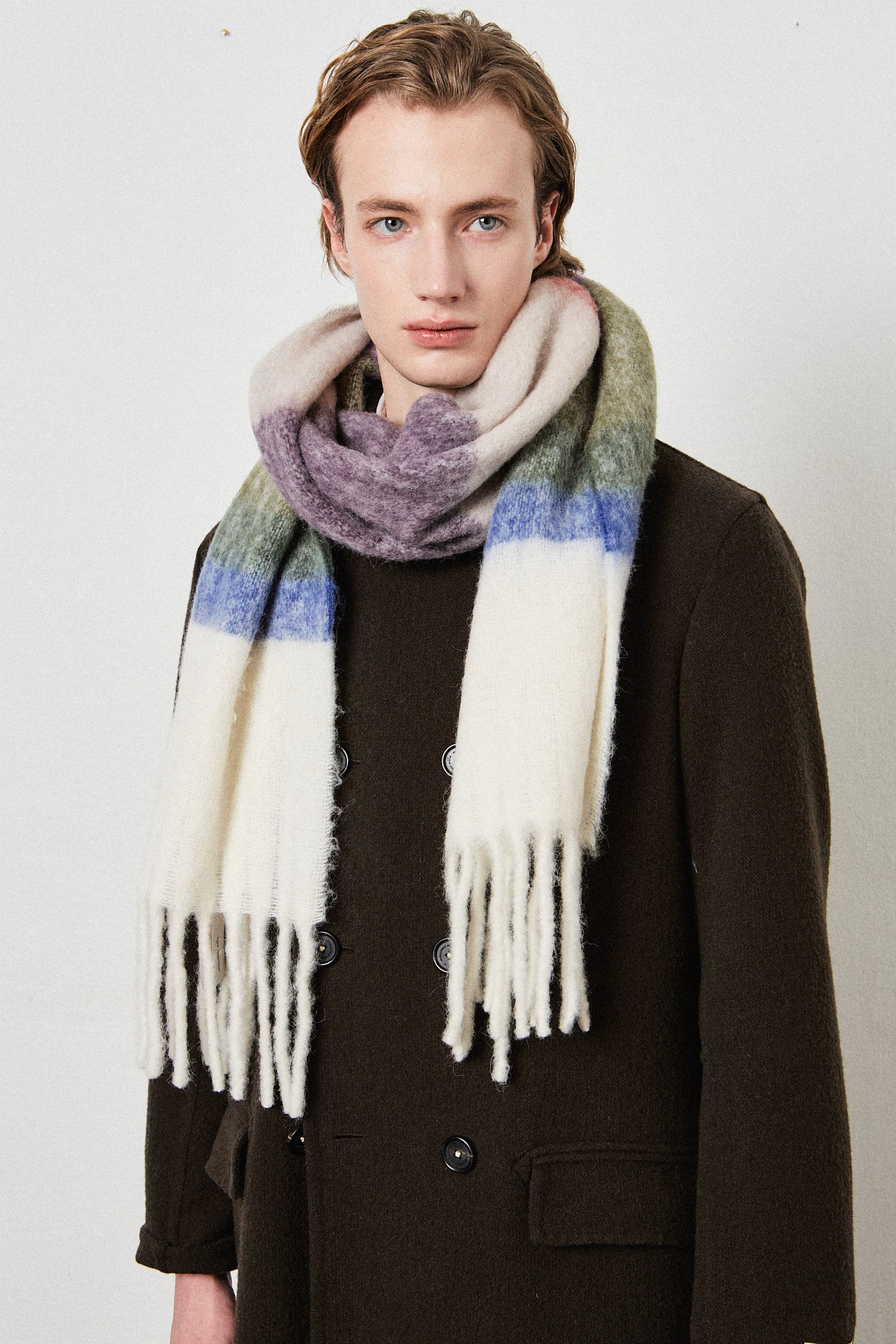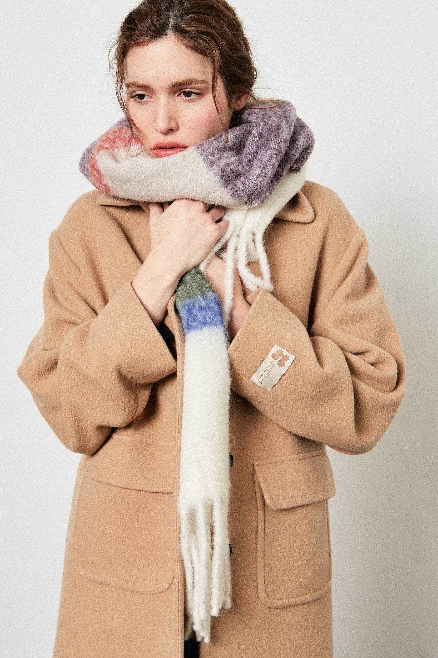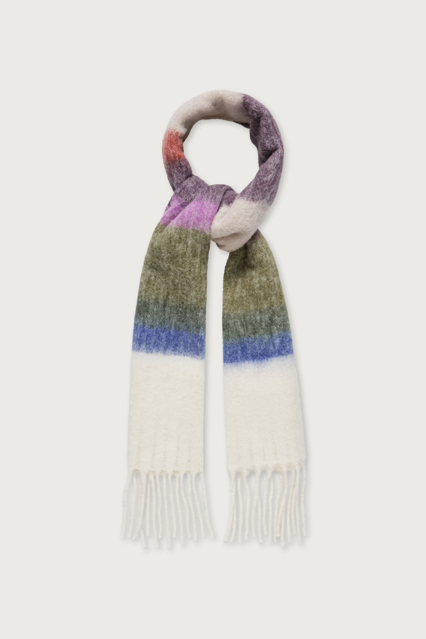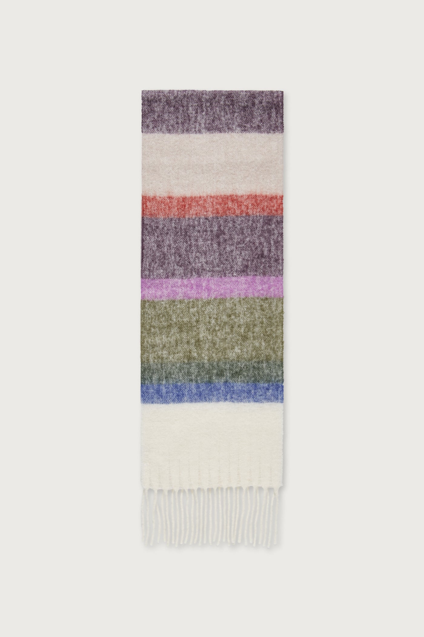 Soft alpaca scarf with multicolored stripe print and fringes. Made in Italy.
