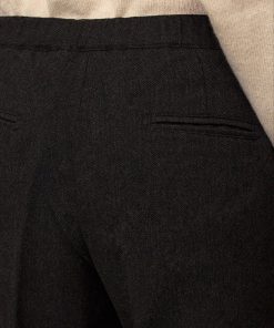 Mid-rise comfort-fit trousers with double pleats, carrot leg tapered at the ankle and cuffed hem. Zip closure with horn button on side waistband. Crafted from soft wool. Made in Italy.
